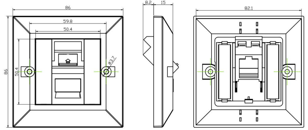 Kakayahang Port: Ang mga faceplate ng port ay idinisenyo upang mapaunlakan ang mga tiyak na uri ng mga konektor, tulad ng RJ45 Ethernet port, RJ11 port ng telepono, F-type coaxial port, at marami pa. Ang faceplate ay magkakaroon ng mga cutout o pagbubukas na tumutugma sa mga sukat at pagsasaayos ng mga port na ito, na nagpapahintulot sa ligtas at wastong pagwawakas.