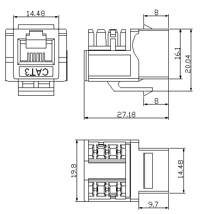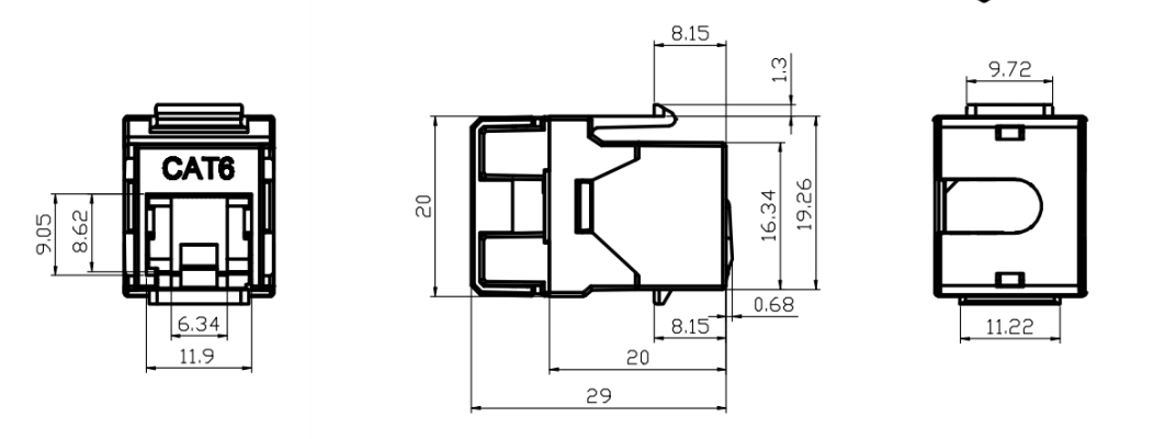 Jack Housing: Ang Jack Housing ay karaniwang gawa sa plastik at nagbibigay ng istraktura at proteksyon para sa mga panloob na sangkap ng jack. Ito ay dinisenyo upang magkasya nang ligtas sa isang pagbubukas o slot ng keystone.