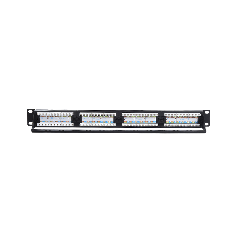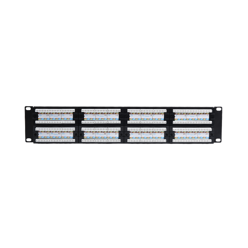 CAT5E/CAT6/CAT6A Patch Panel: Ang mga patch panel na ito ay partikular na idinisenyo para sa pagtatapos at pamamahala ng CAT5E, CAT6, o CAT6A Ethernet cable. Nagbibigay ang mga ito ng maraming mga port upang mapaunlakan ang koneksyon ng mga cable ng Ethernet mula sa iba't ibang mga aparato sa network tulad ng mga computer, switch, router, at server. Ang mga ito ay karaniwang magagamit sa mga pagsasaayos tulad ng 24-port, 48-port, o mas mataas, at suportahan ang bilis ng paghahatid ng data hanggang sa 10 gigabit Ethernet.