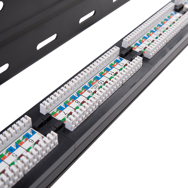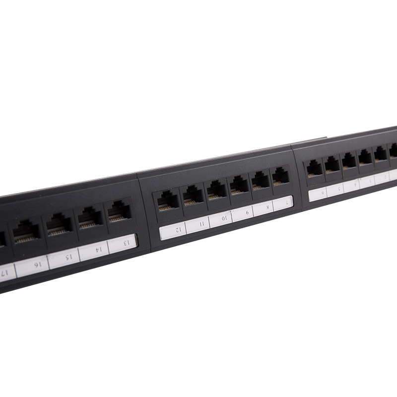 Pamamahagi ng Signal: Ang mga panel ng patch ay kumikilos bilang mga puntos ng pamamahagi para sa mga signal ng network. Tumatanggap sila ng mga signal mula sa iba't ibang mga aparato sa network at ipinamamahagi ang mga ito sa naaangkop na patutunguhan. Sa pamamagitan ng paggamit ng mga patch cords, ang mga administrador ng network ay maaaring magtatag o magbago ng mga koneksyon sa pagitan ng mga aparato at matiyak ang mahusay na paghahatid ng signal.