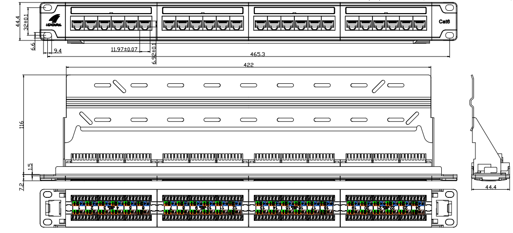 CAT5E/CAT6/CAT6A Patch Panel: Ang mga patch panel na ito ay partikular na idinisenyo para sa pagtatapos at pamamahala ng CAT5E, CAT6, o CAT6A Ethernet cable. Nagbibigay ang mga ito ng maraming mga port upang mapaunlakan ang koneksyon ng mga cable ng Ethernet mula sa iba't ibang mga aparato sa network tulad ng mga computer, switch, router, at server. Ang mga ito ay karaniwang magagamit sa mga pagsasaayos tulad ng 24-port, 48-port, o mas mataas, at suportahan ang bilis ng paghahatid ng data hanggang sa 10 gigabit Ethernet.
